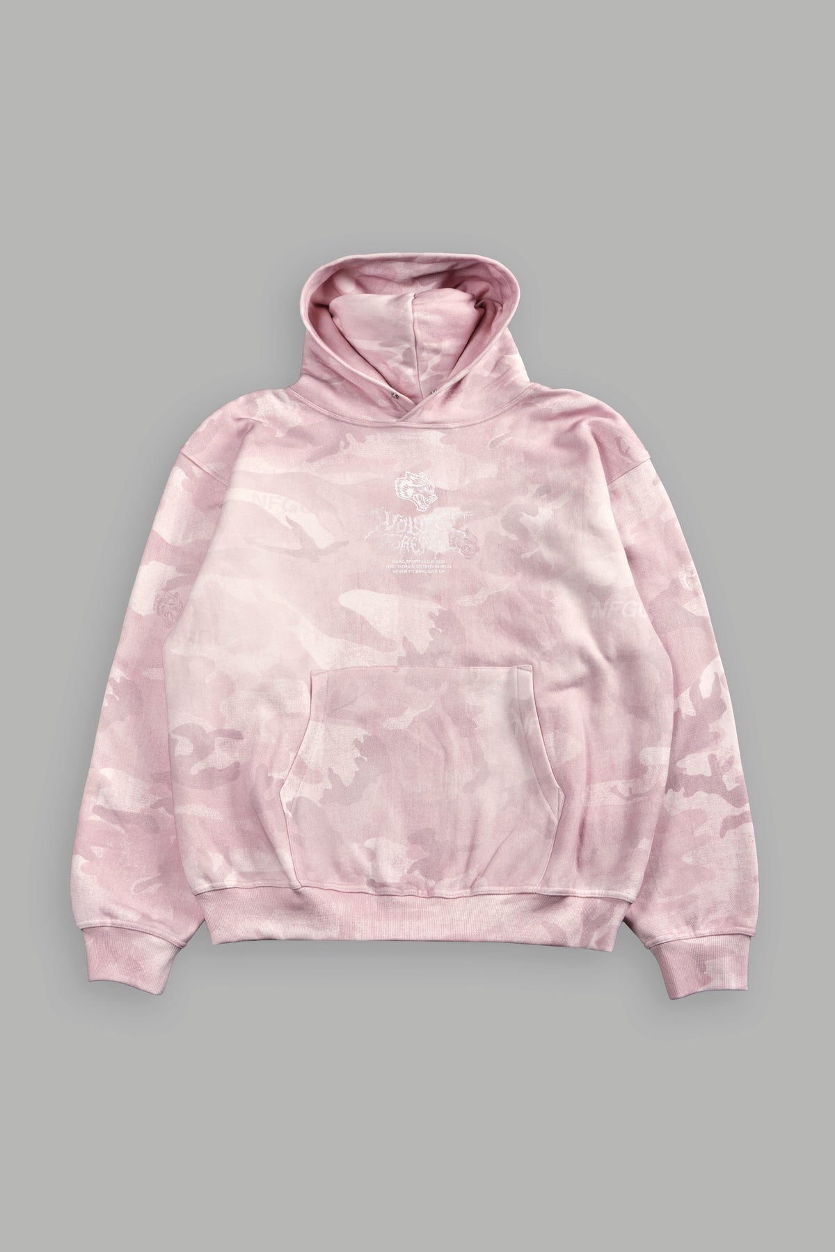 Drip Hesh WLVS FRVR Unisex "Pierce" Hoodie in Blush Vintage Woodland Camo