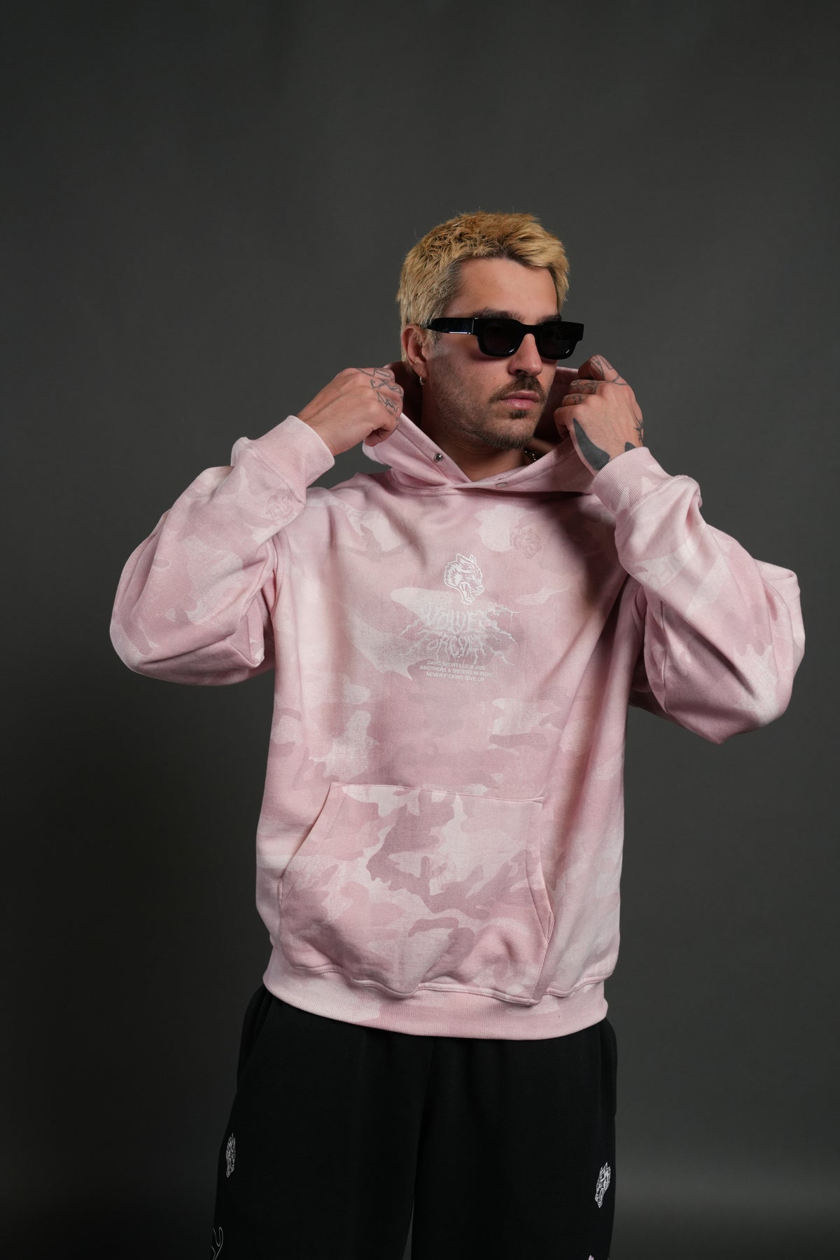 Drip Hesh WLVS FRVR Unisex "Pierce" Hoodie in Blush Vintage Woodland C
