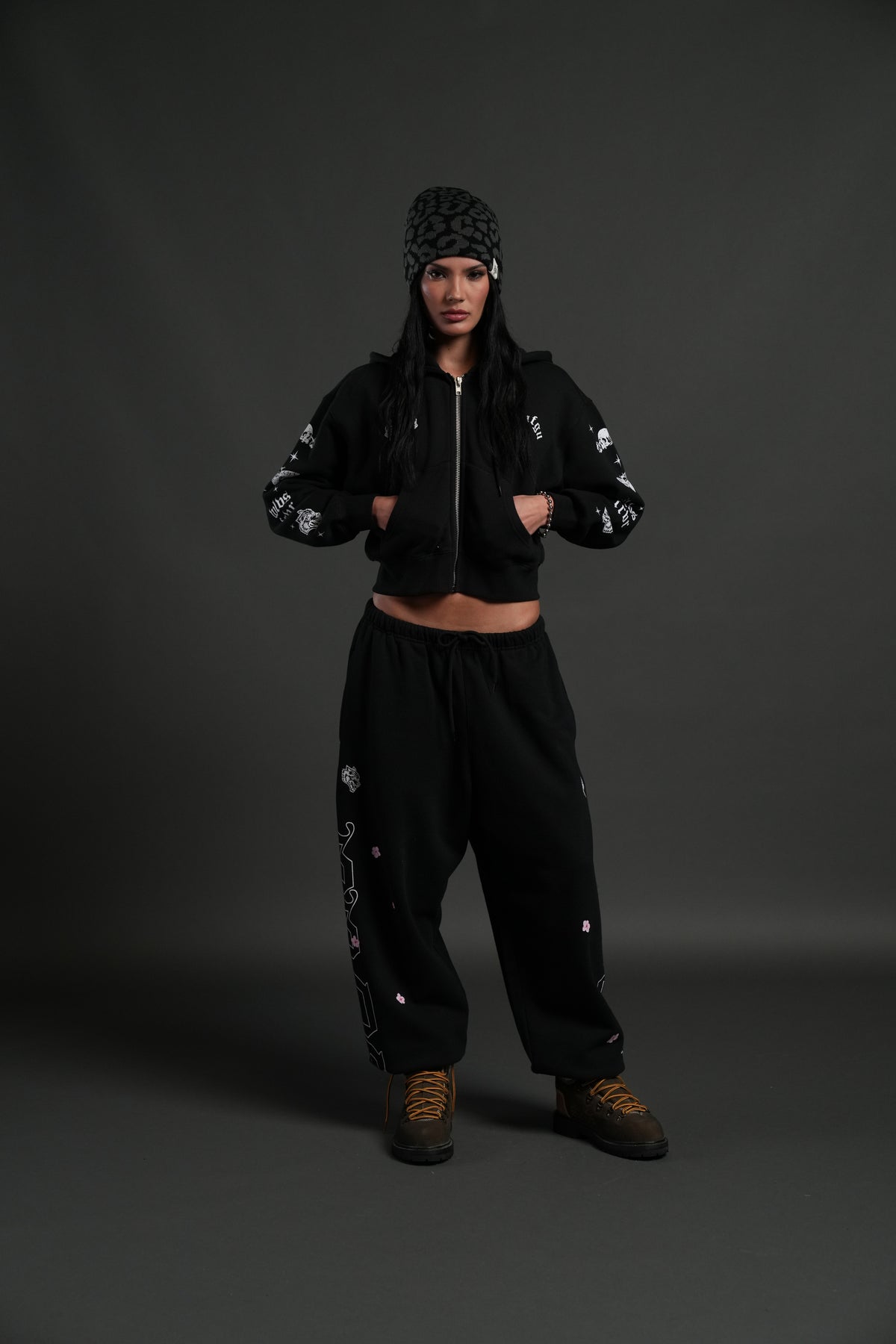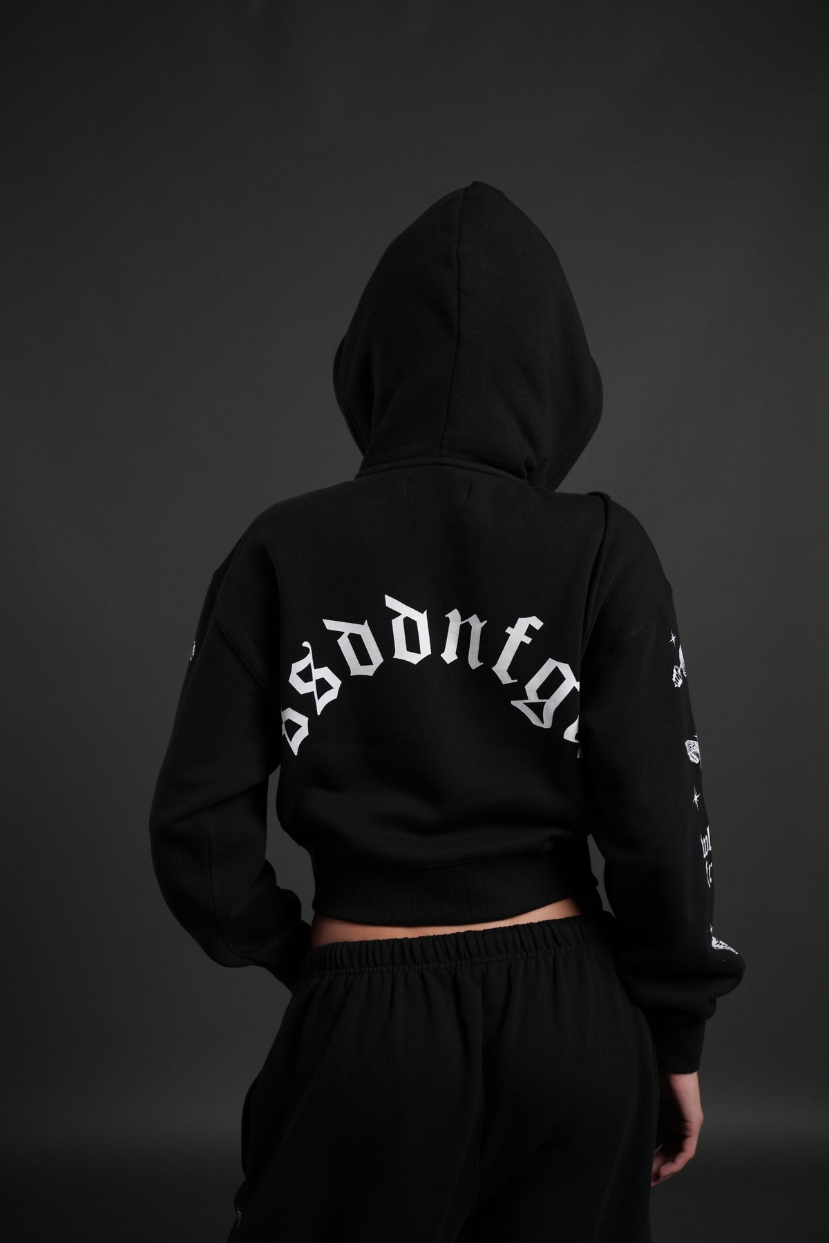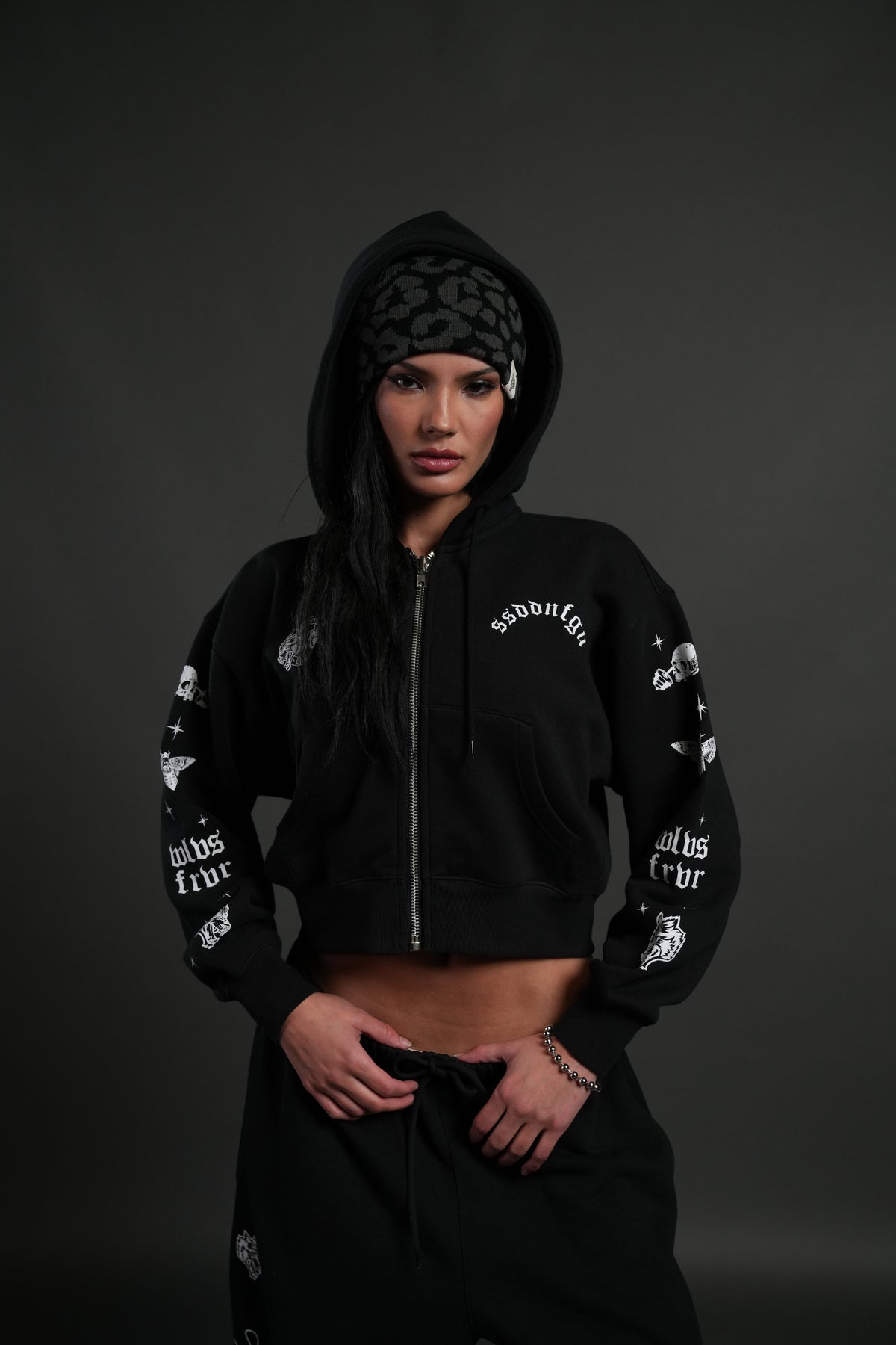 FRVR in the Stars "Sage" Cropped Zip Hoodie in Black