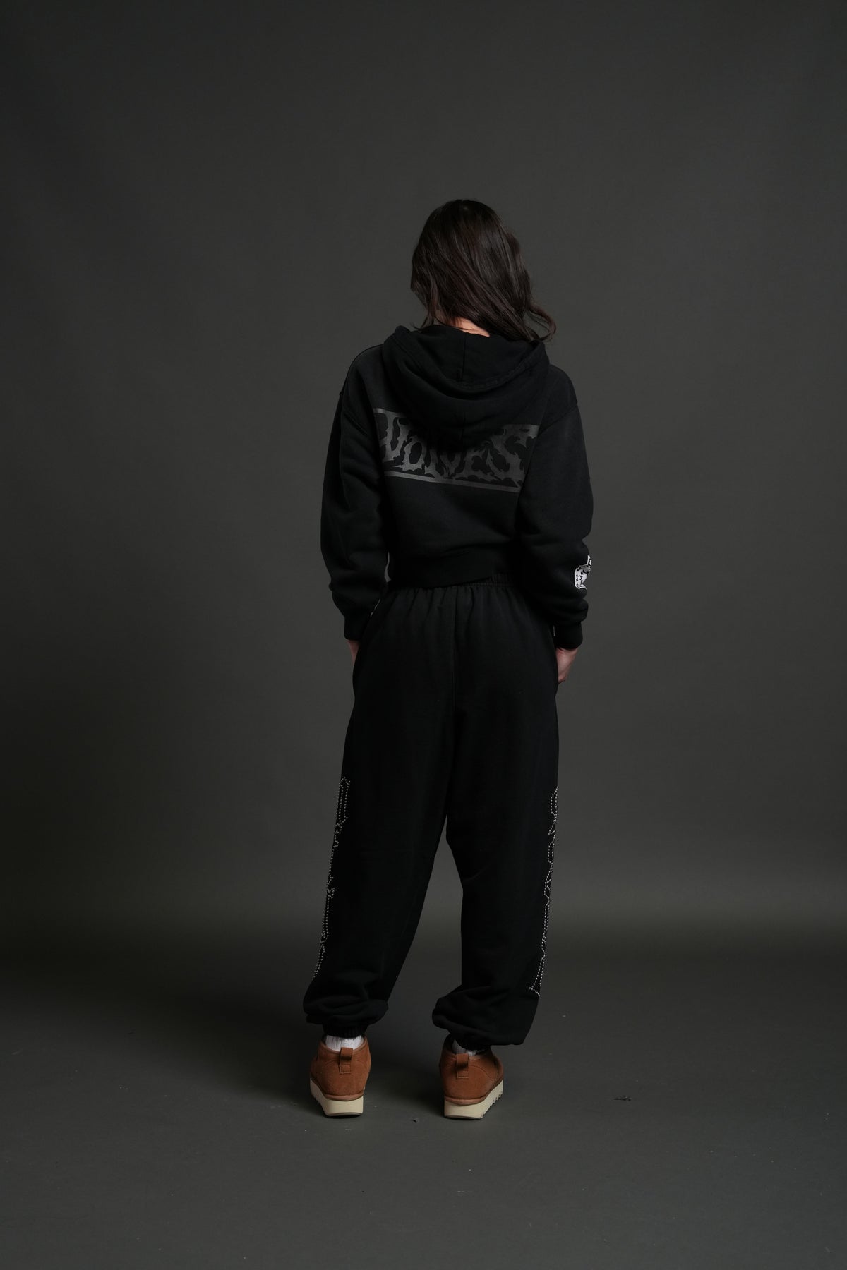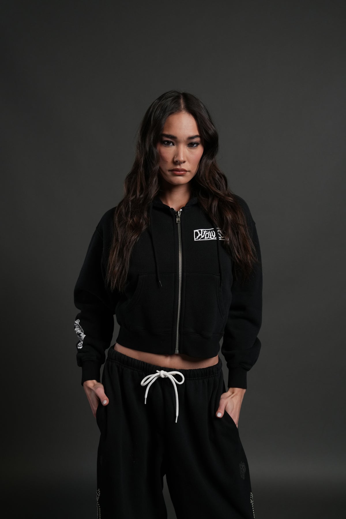 Midnight Wolves "Sage" Cropped Zip Hoodie in Black Drift Wash