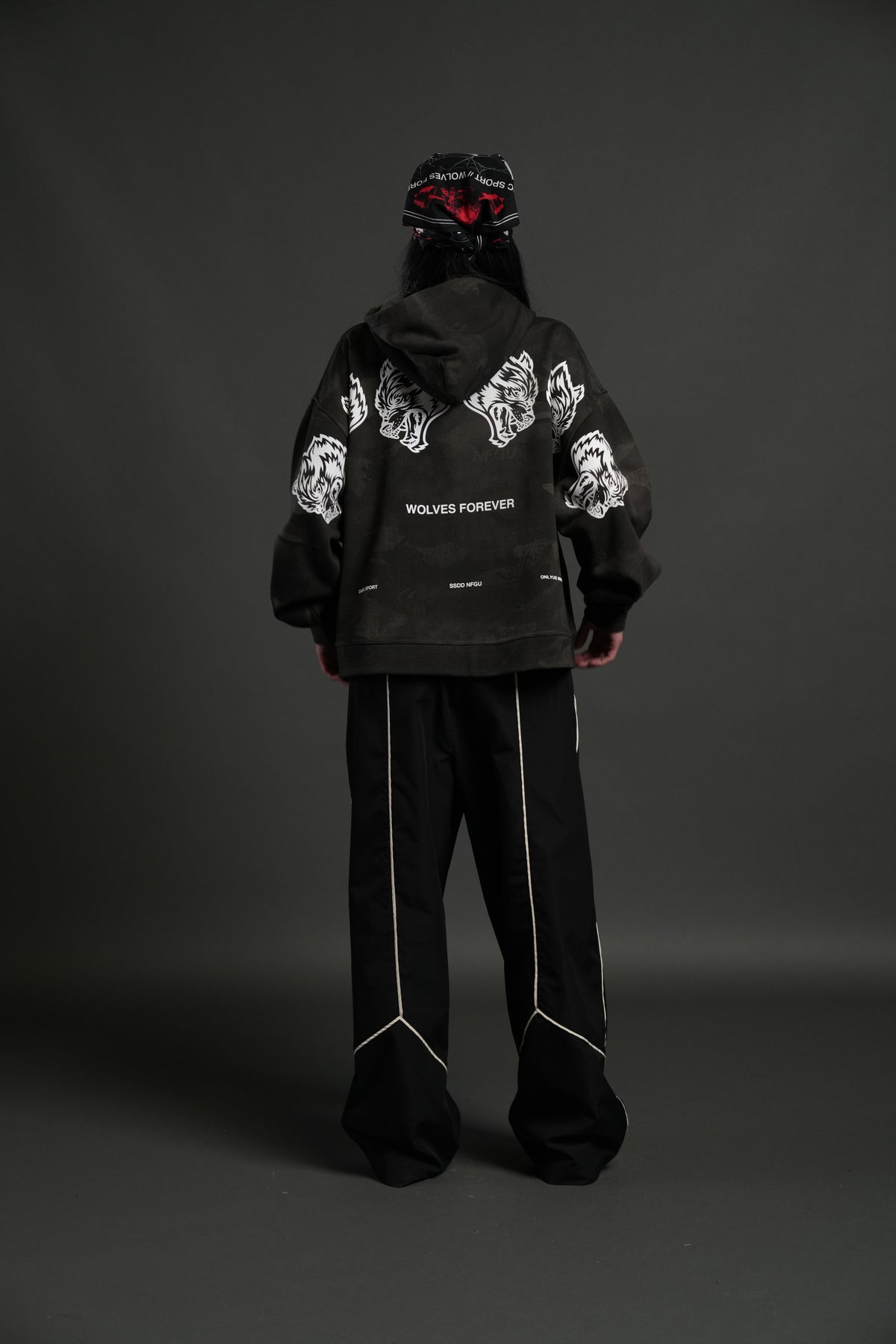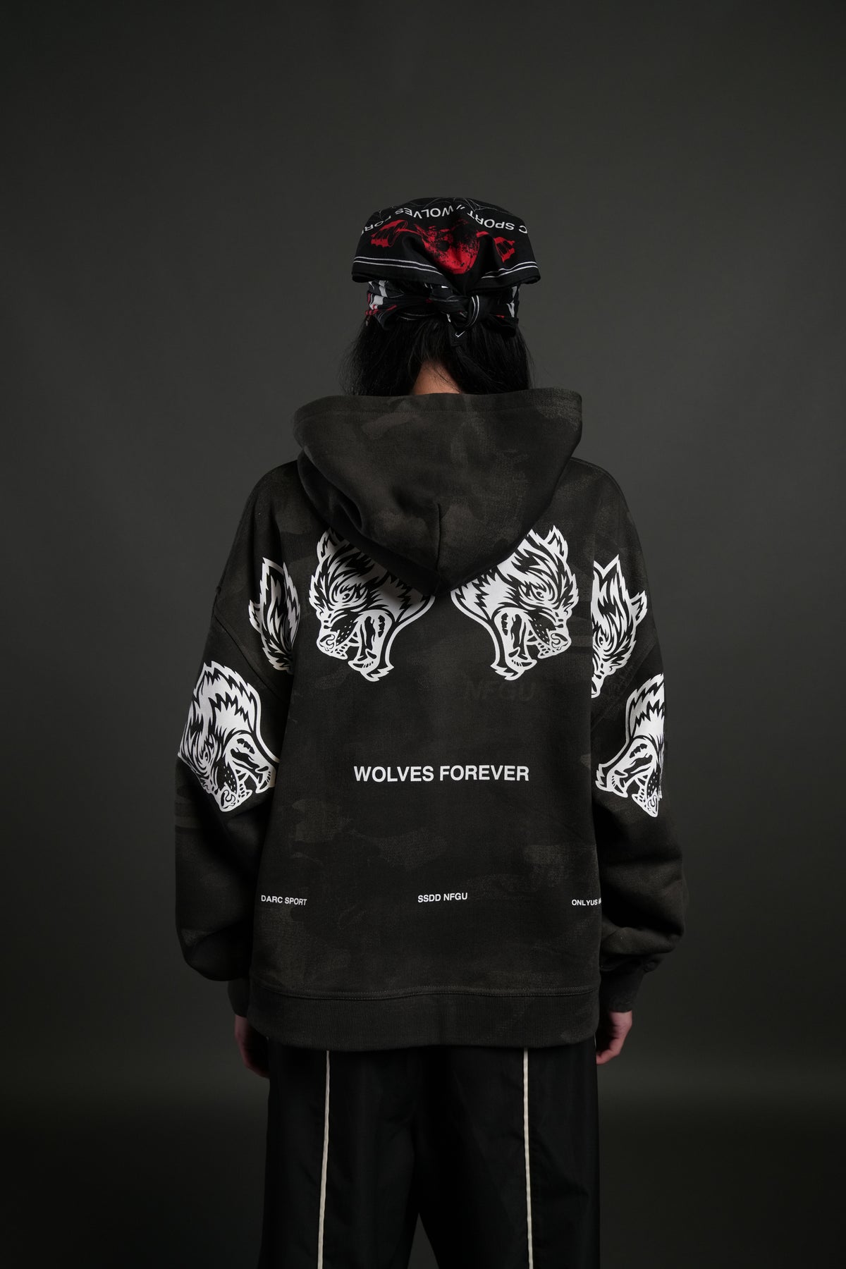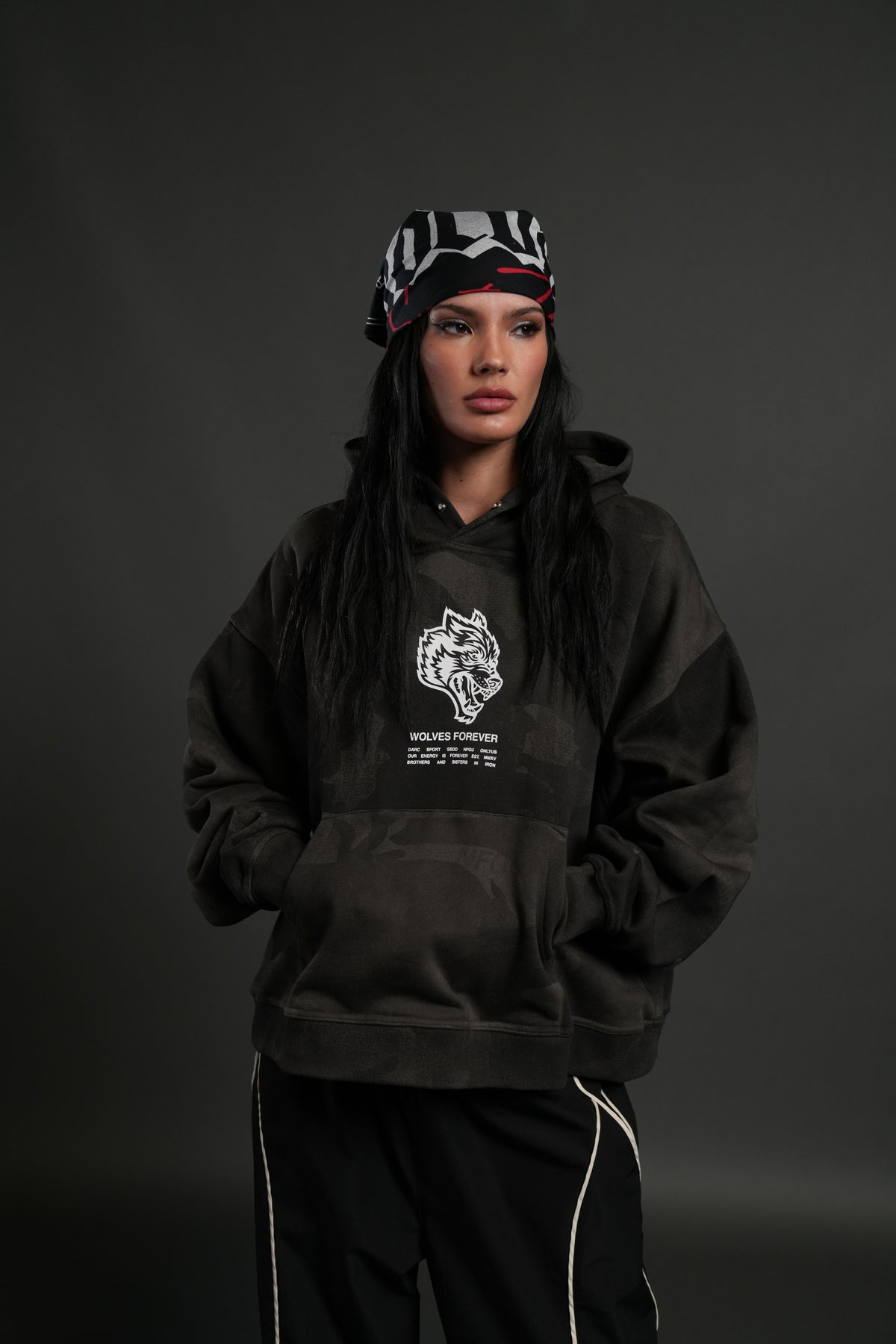 Wolves Have Your Back Unisex "Box Cut" Pierce Hoodie in Black Vintage Woodland Camo