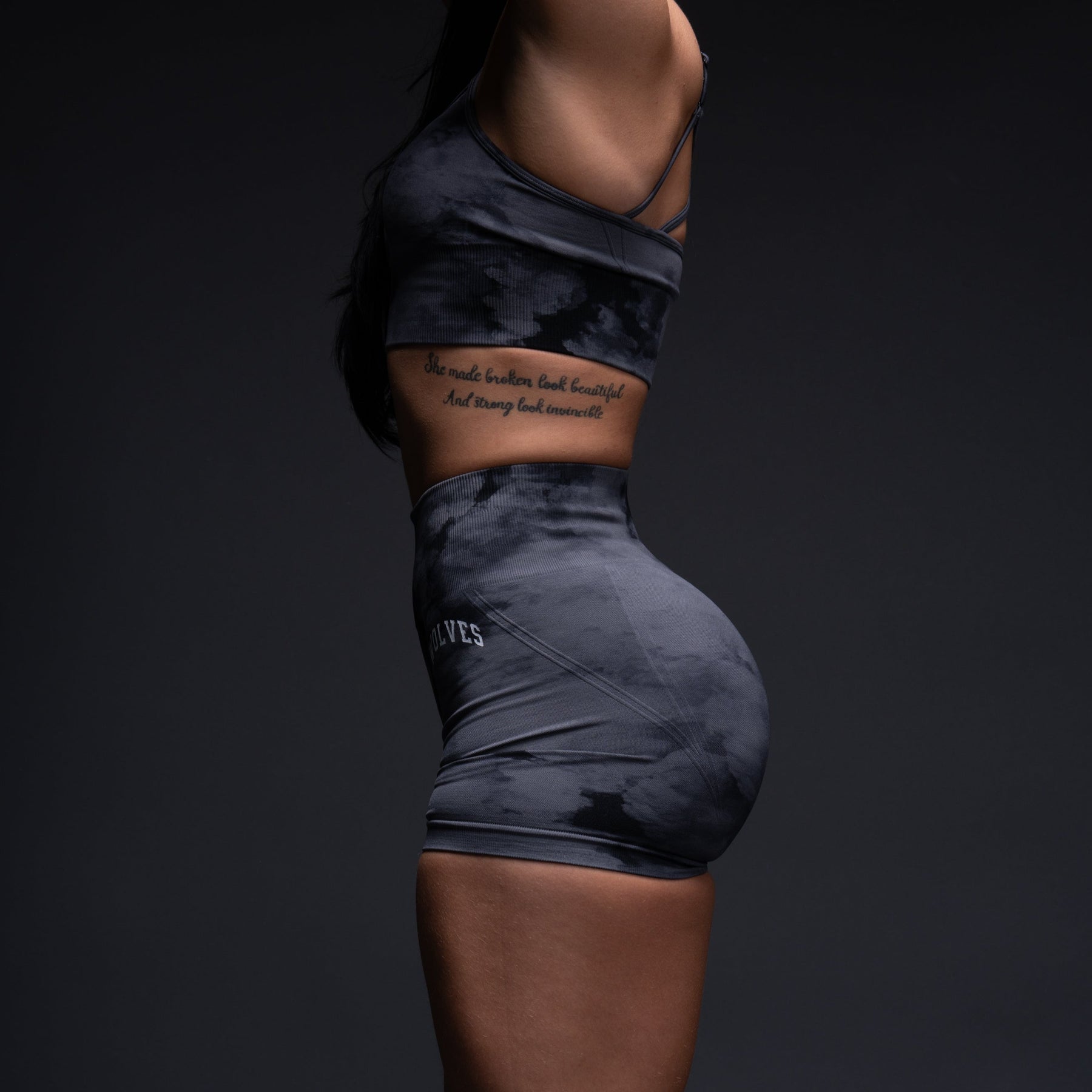 Loyalty Everson Seamless "Huxley" Shorts in Black Ghost Clouds
