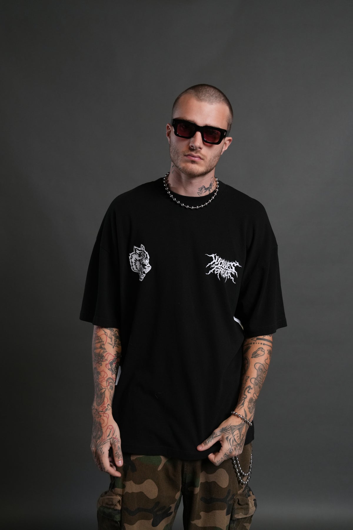 Sung Jinwoo "Side By Side" Series Premium Oversized Tee in Black