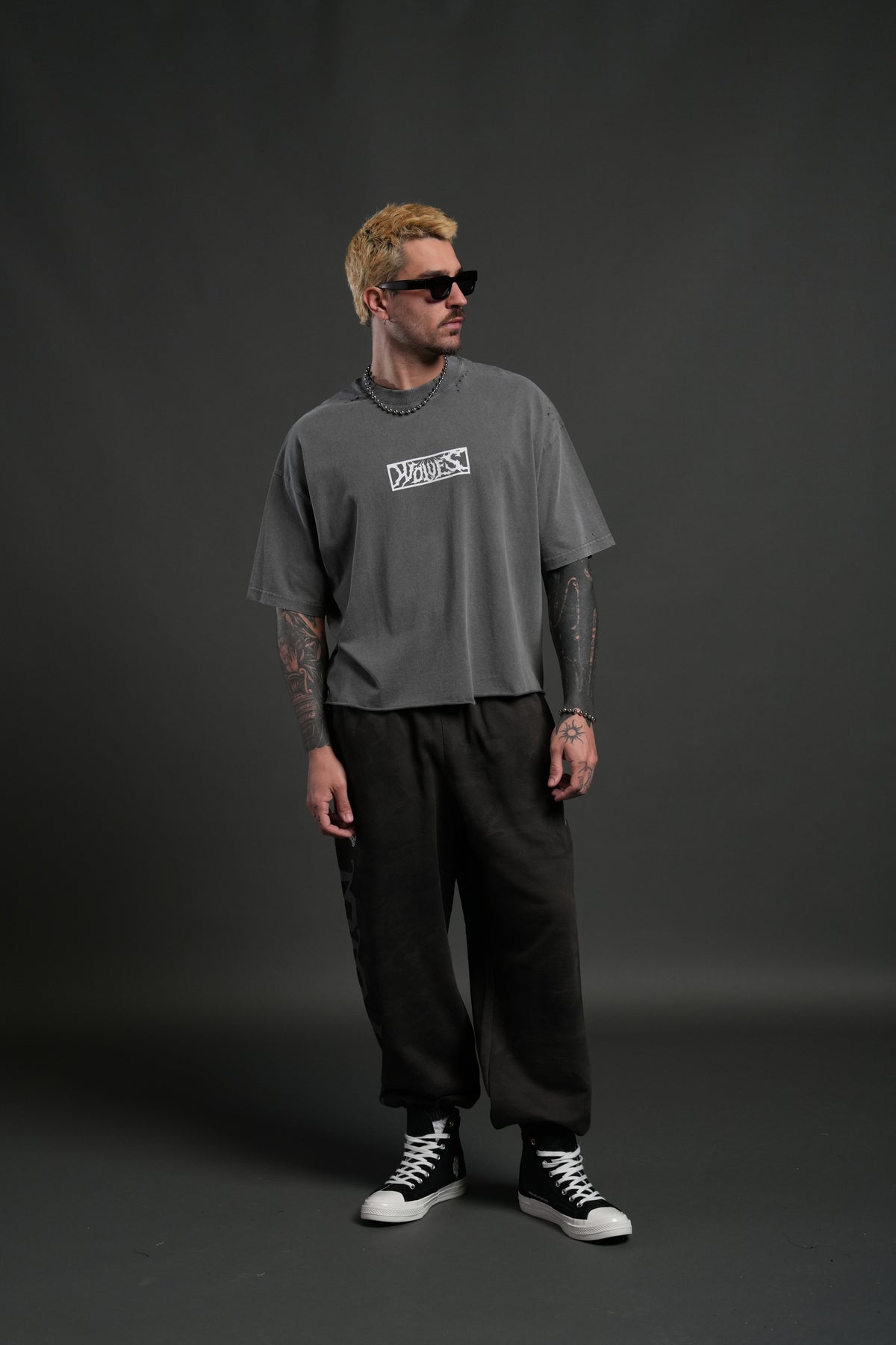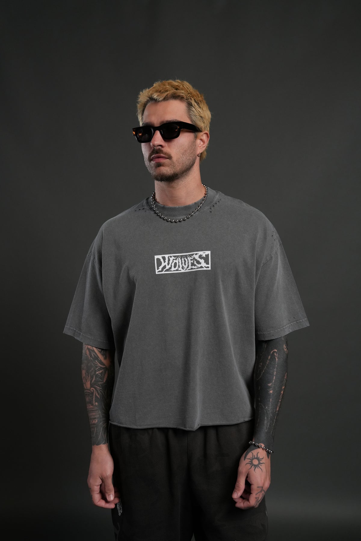 Midnight Wolves Distressed Grunge "Box Cut" Tee V2 in Slate Gray