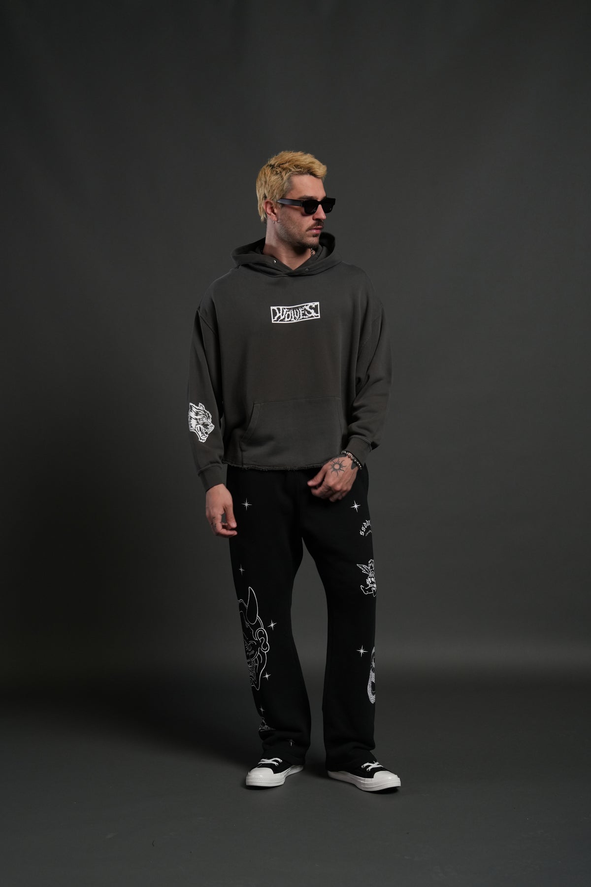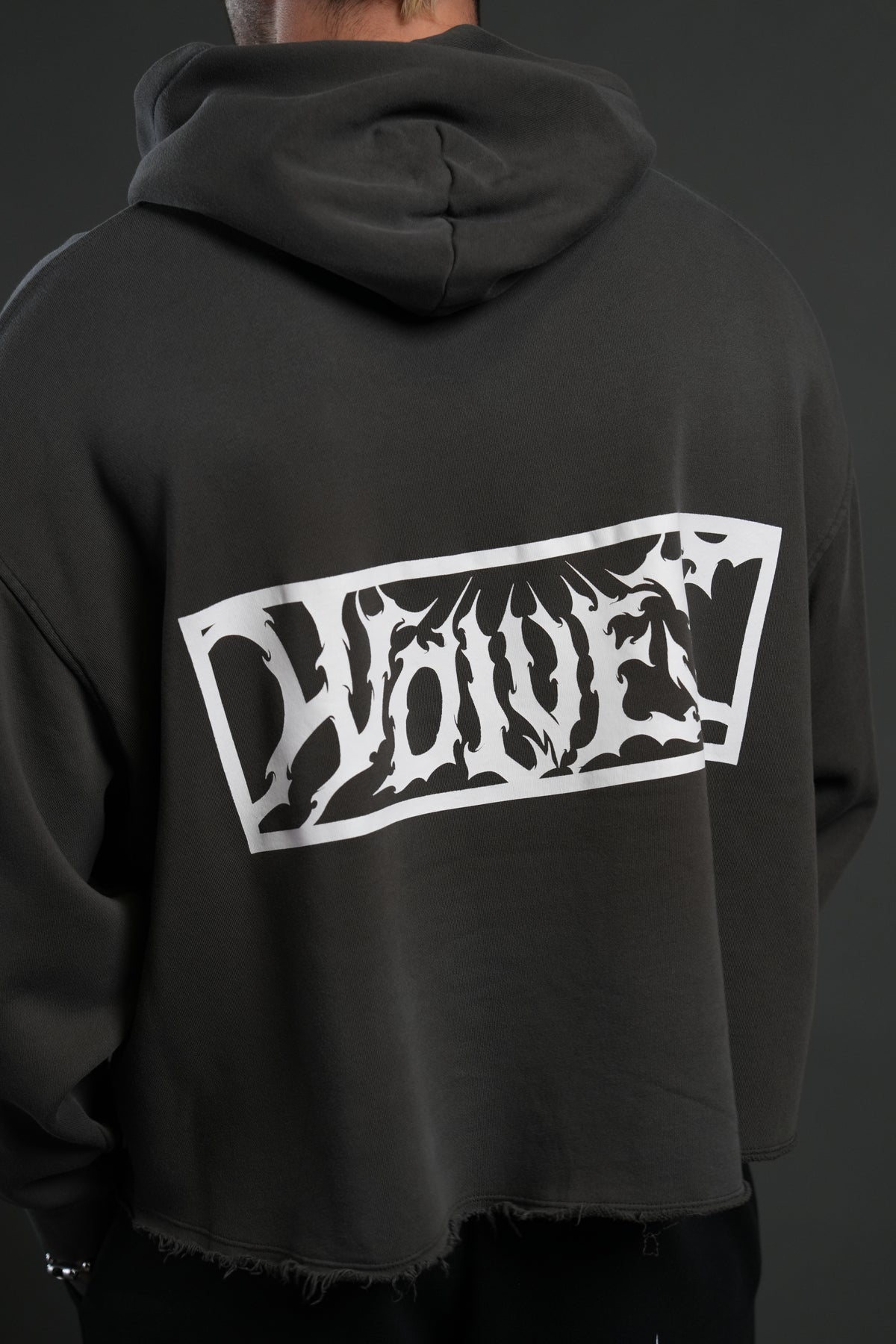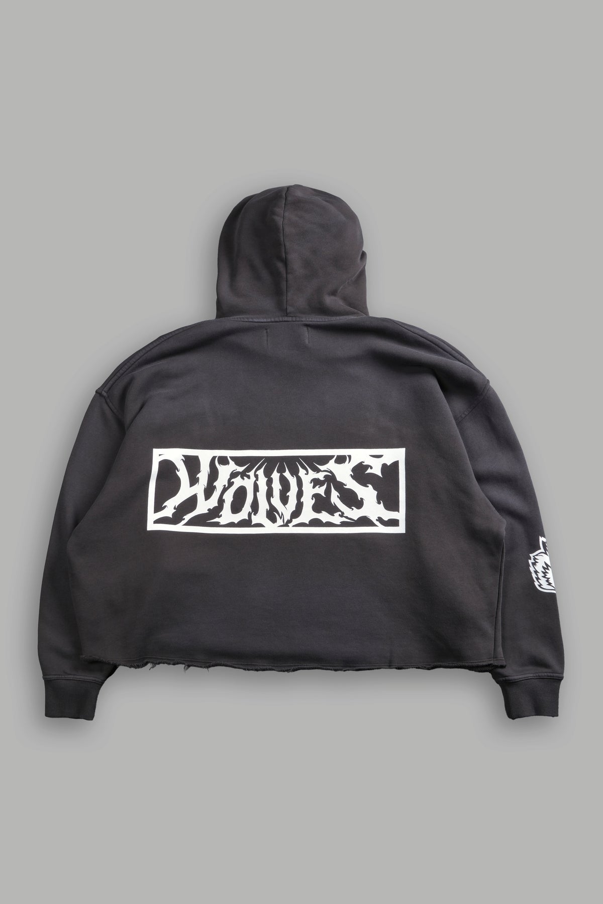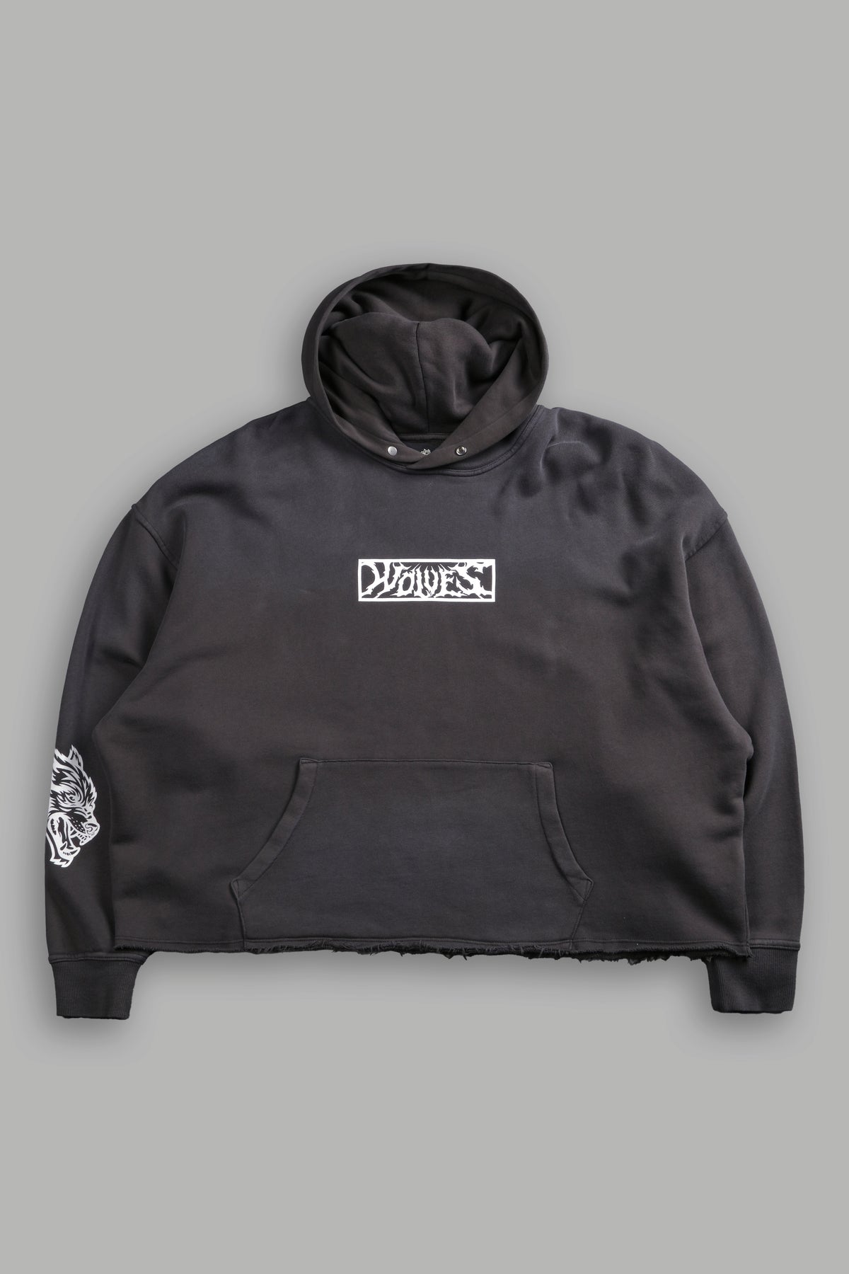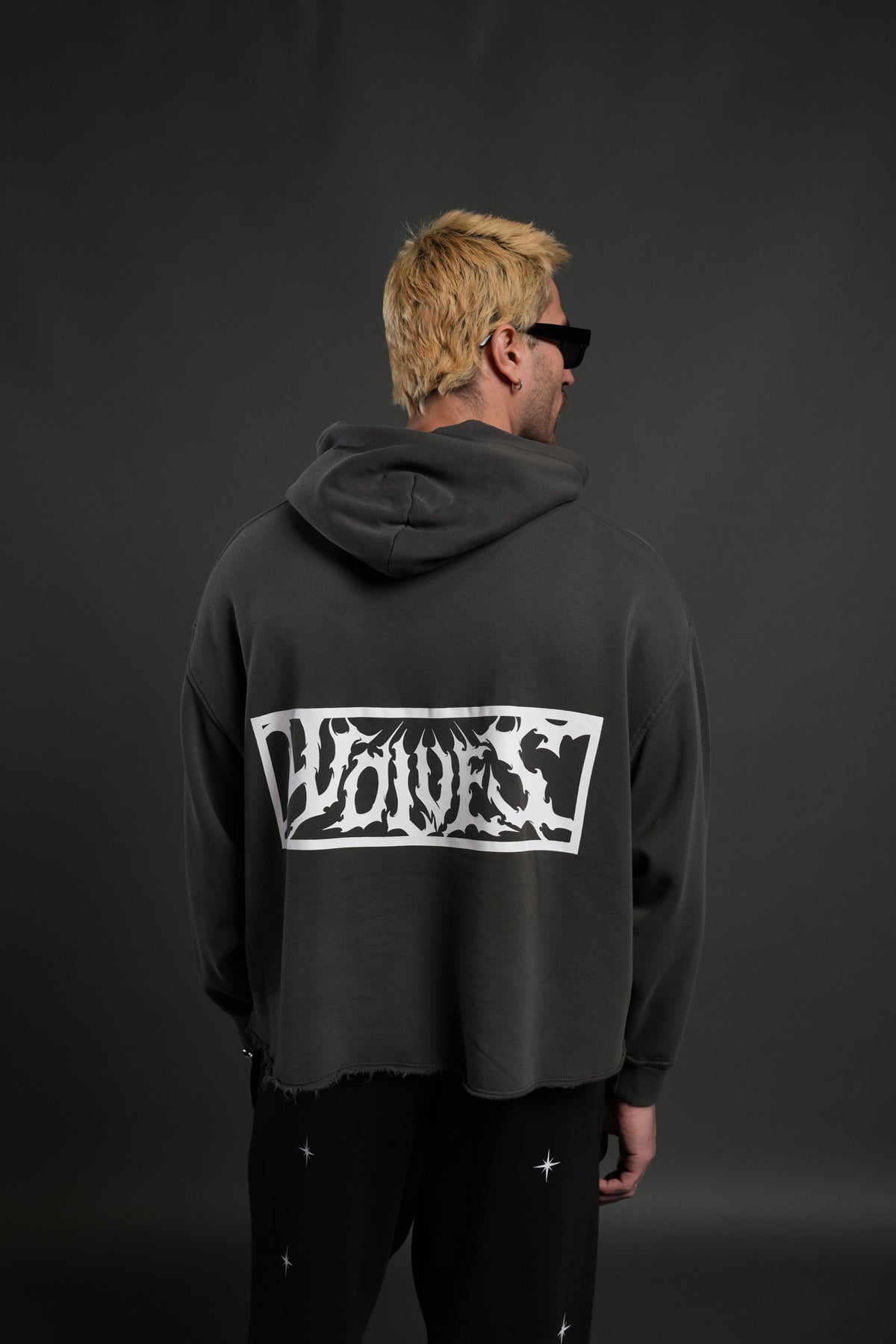 Midnight Wolves Raw Hem "Box Cut" Pierce Hoodie in Wolf Gray Drift Wash