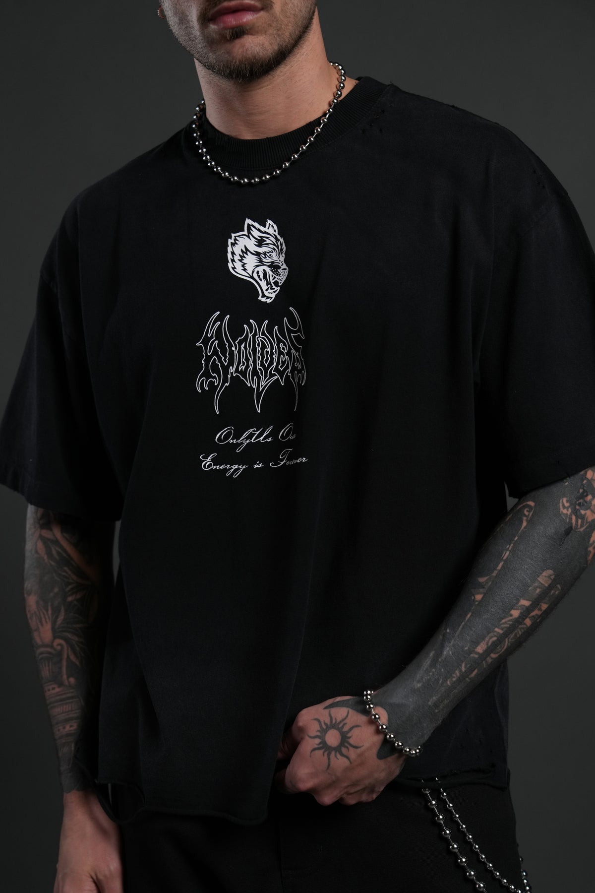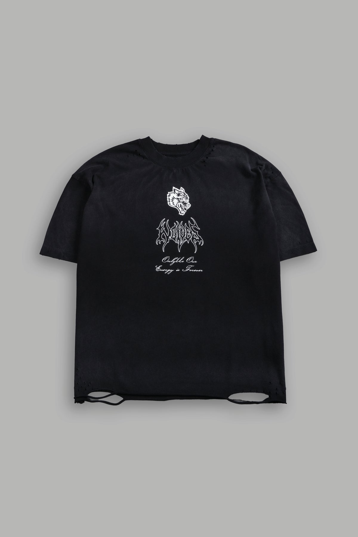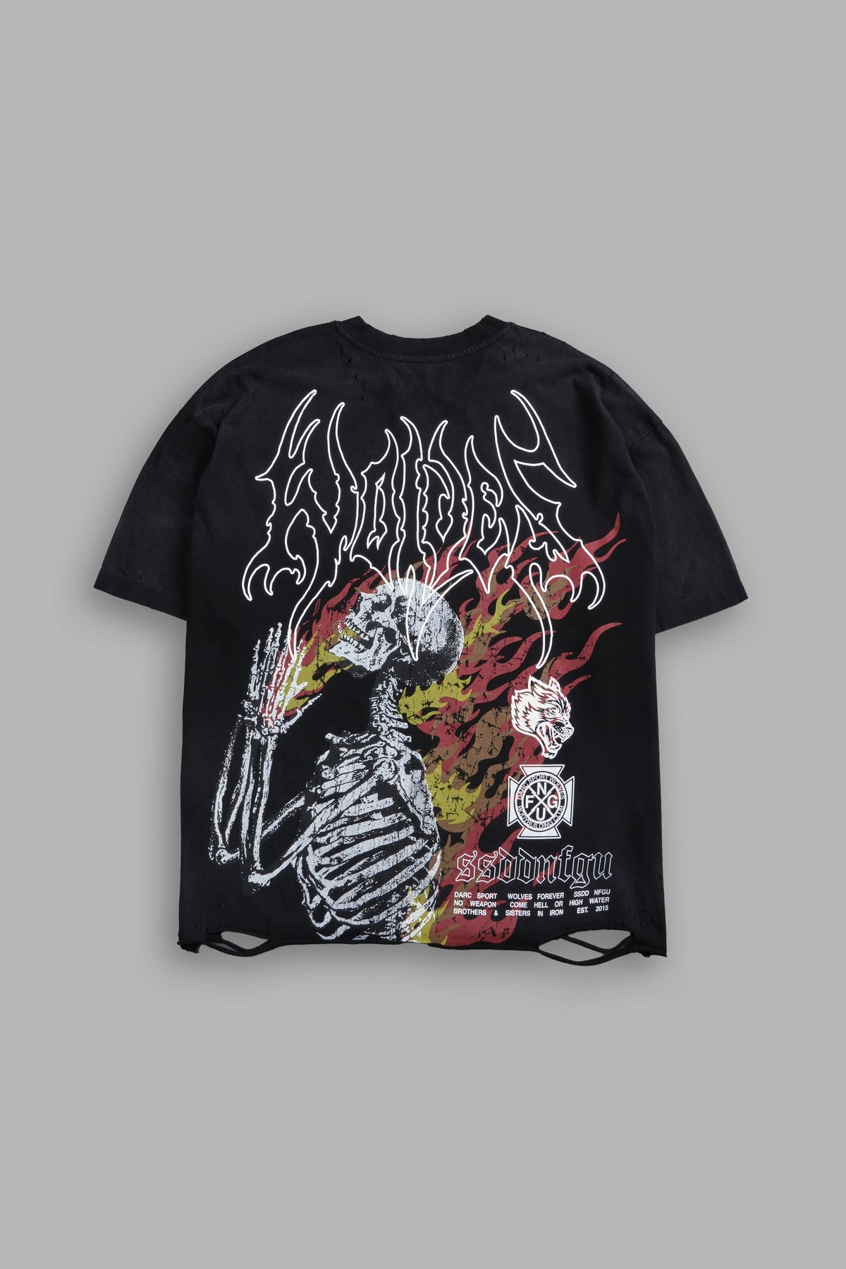 Mori Flames Distressed Grunge Tee in Black Drift Wash