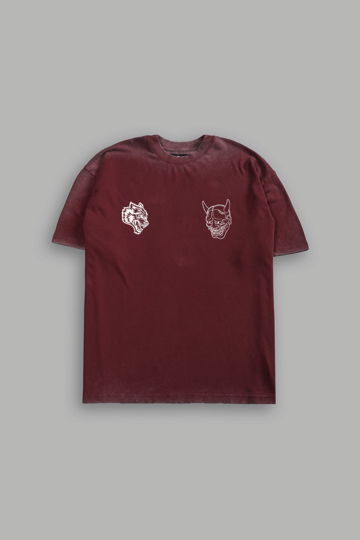 Oni Wolves "Premium" Oversized Tee in Oxblood